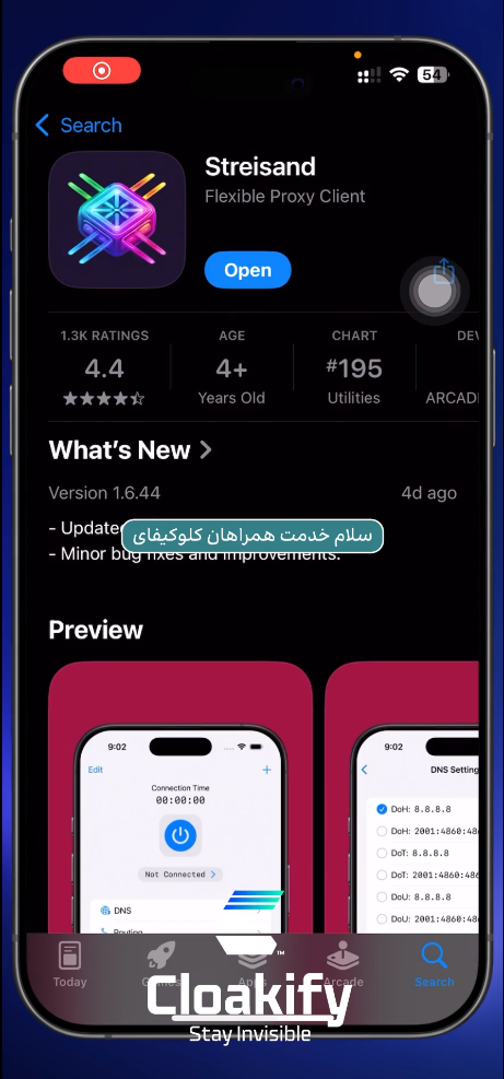 این بلاگ مربوط به آموزش استفاده از برنامه Streisand برای سیستمعامل iOS (آیفون) است.